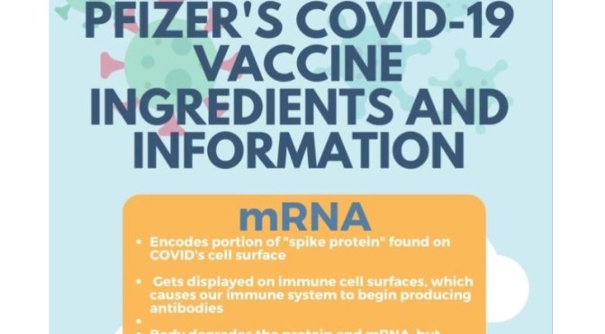 Medicine, Men's Health, Prevention, Resources, Rx, Women's Health INFOGRAPHIC: ‘PFIZER’S VACCINE INGREDIENTS & TREATMENT INFORMATION’ Image December 19, 2020 doctorswithoutwaitingrooms Leave a comment Share this: Click to share on X (Opens in new window) X Click to share on Facebook (Opens in new window) Facebook Related