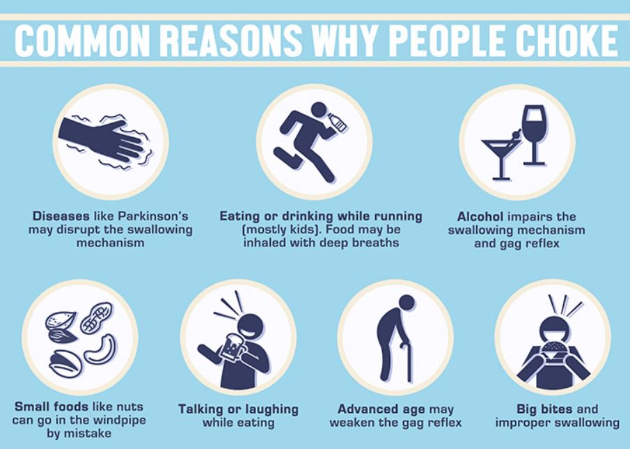 lead to Aspiration of food. The only guidance he gave me was to eat and drink more slowly. I find that I am most likely to choke when I drink wine, or a tasty beverage which I tend to “slurp” so as to fan the aroma out broadly in my mouth. I am having a hard time breaking myself of that habit.