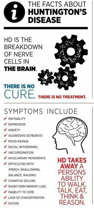 The symptoms begin as a movement disorder, and initially was called Huntington Chorea, because of the abnormal “Dance-like” movements of affected individuals . Eventually, psychiatric, intellectual and other symptoms occur which span all areas of the brain.