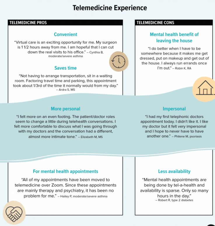 ‘Though people living with a chronic condition have a vast range of experiences, our data show that the most common way they managed their condition between March and May 2020 was through telemedicine (45 percent). Only 8 percent had used it before… ‘