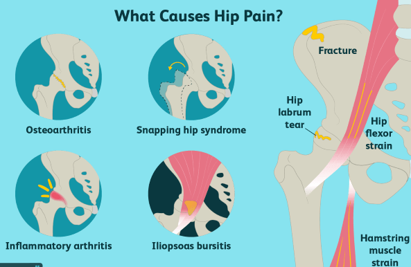 Sports injuries and falls can cause a hip fracture or a tear in the hip labrum that can declare as pain, but here’s the problem is more about how to treat it, rather than the diagnosis. As you get older, remember to take your calcium and vitamin D to prevent osteoporosis, and maintain your muscle strength and balance to prevent falls. Please type in “falls” for a discussion on how to prevent this often devastating problem in the elderly.
