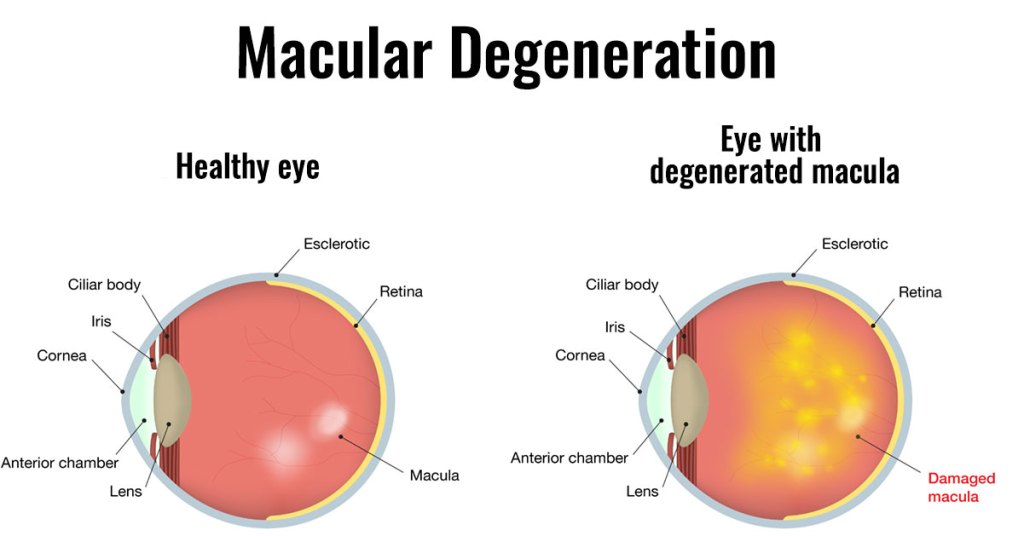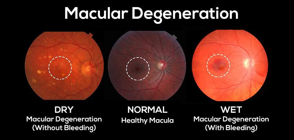 Macular degeneration has two forms, wet and dry. The wet macular degeneration has accumulations, or Drusen, under the epithelium. There are also machines to check the thickness of the macula, which is an aid in diagnosis.